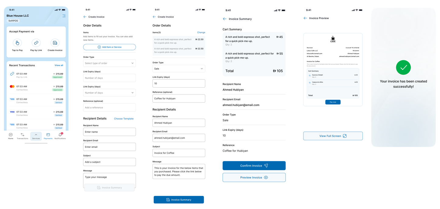 - Review details → tap Confirm Invoice or Preview Invoice.