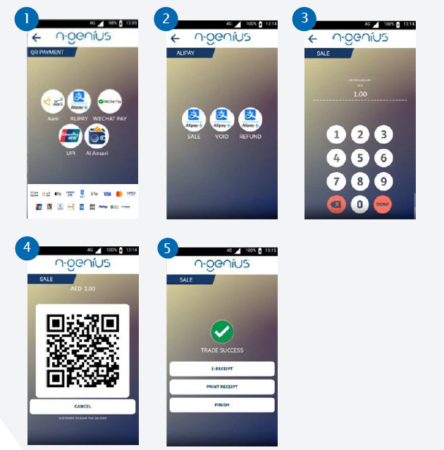 - Select QR PAYMENT → UPI or NPCI QR → SALE.