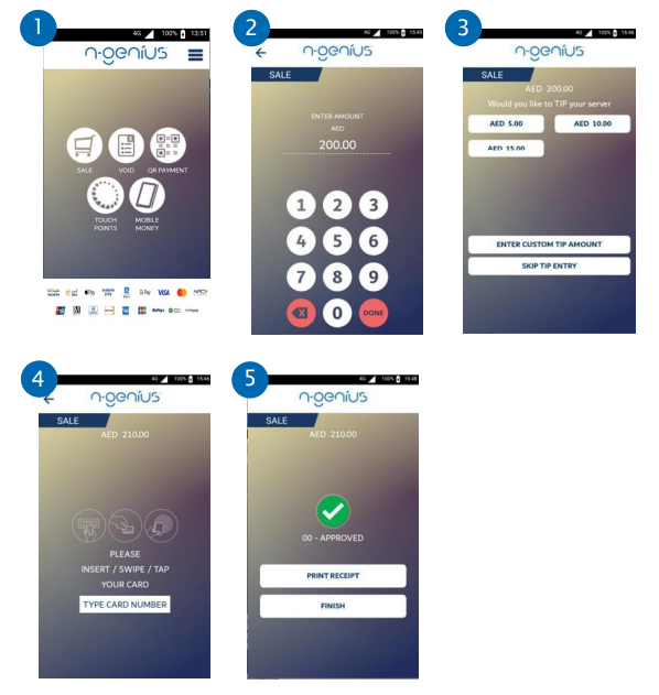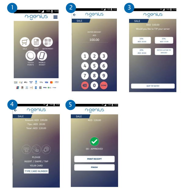 - Enter the transaction amount and tap DONE (add tip if enabled).