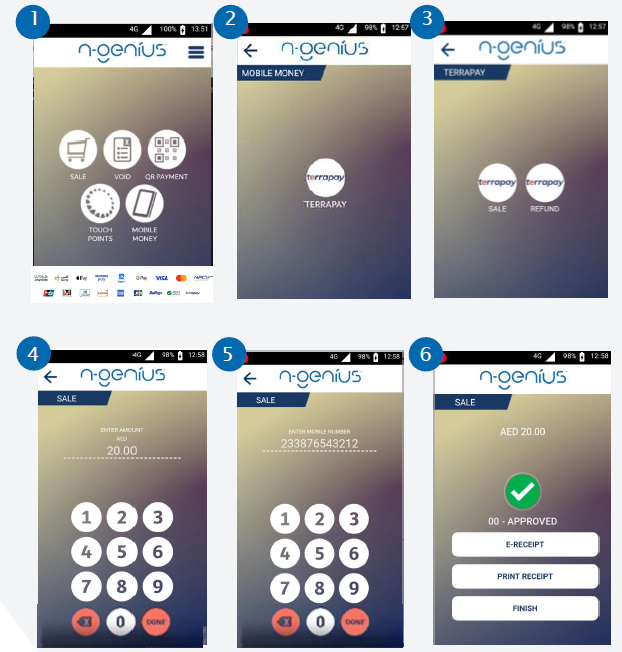 - Select MOBILE MONEY → TERRAPAY → SALE.