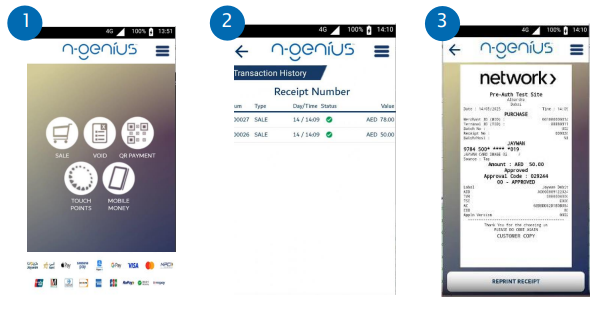 - On success, select from E-Receipt, QR Receipt, or View Receipt options.