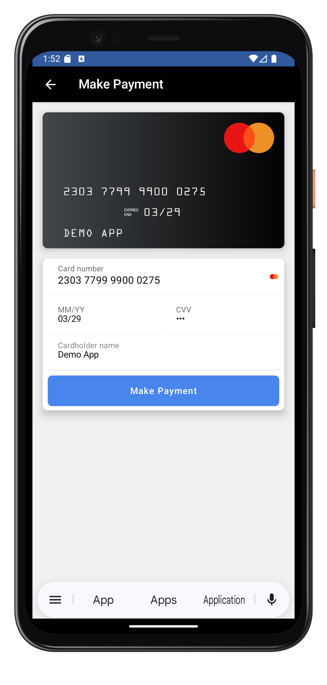 When the sample app opens, you’ll see an interface with the option to make a payment.