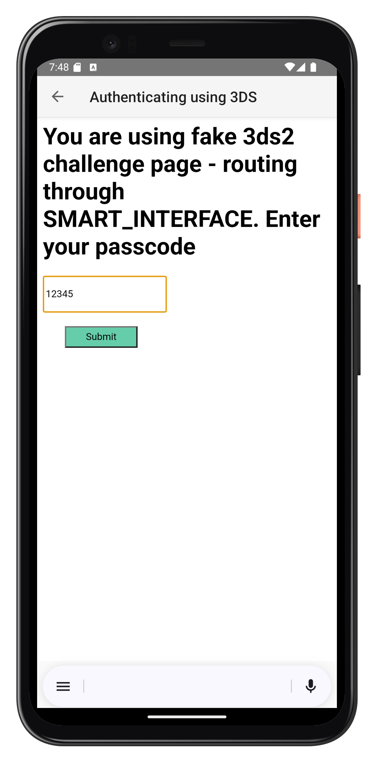 This internally launches an activity to collect card details and manage the 3D Secure flow. When the payment is complete, onActivityResult() is triggered in your calling activity.
